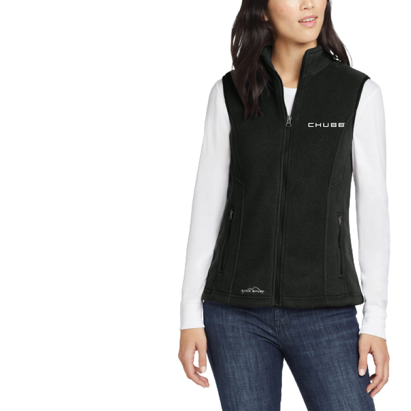Ward off early morning chills by insulating your core in this soft, cozy vest.6.9-ounce, 100% polyester fleeceProduced using Low Impact Technology (L.I.T.™) which uses less dyestuffs, thermal energy and water for enhanced softness, performance and after-care qualityPrincess seamsDyed-to-match reverse coil zippersFront zippered pockets with tricot liningBinding at armholes and at open hemContrast embroidered Eddie Bauer logo on right hem